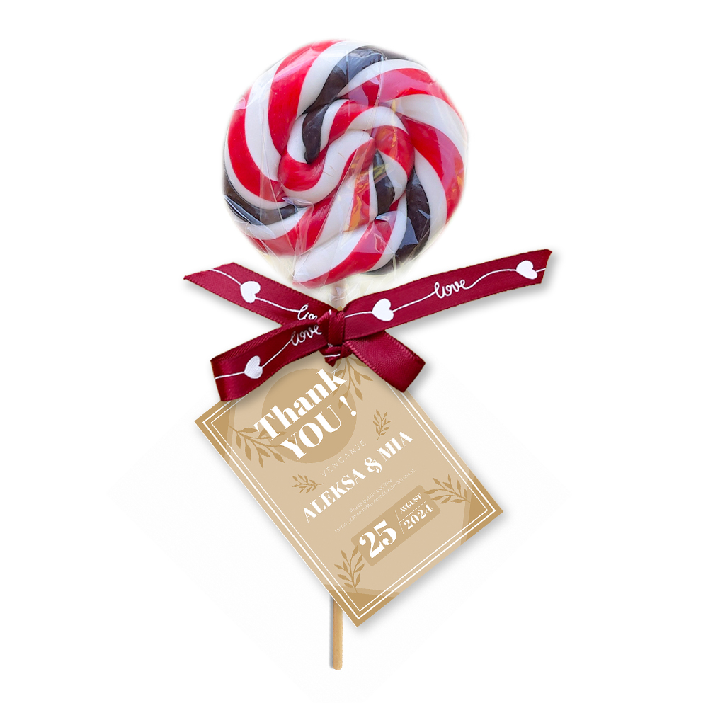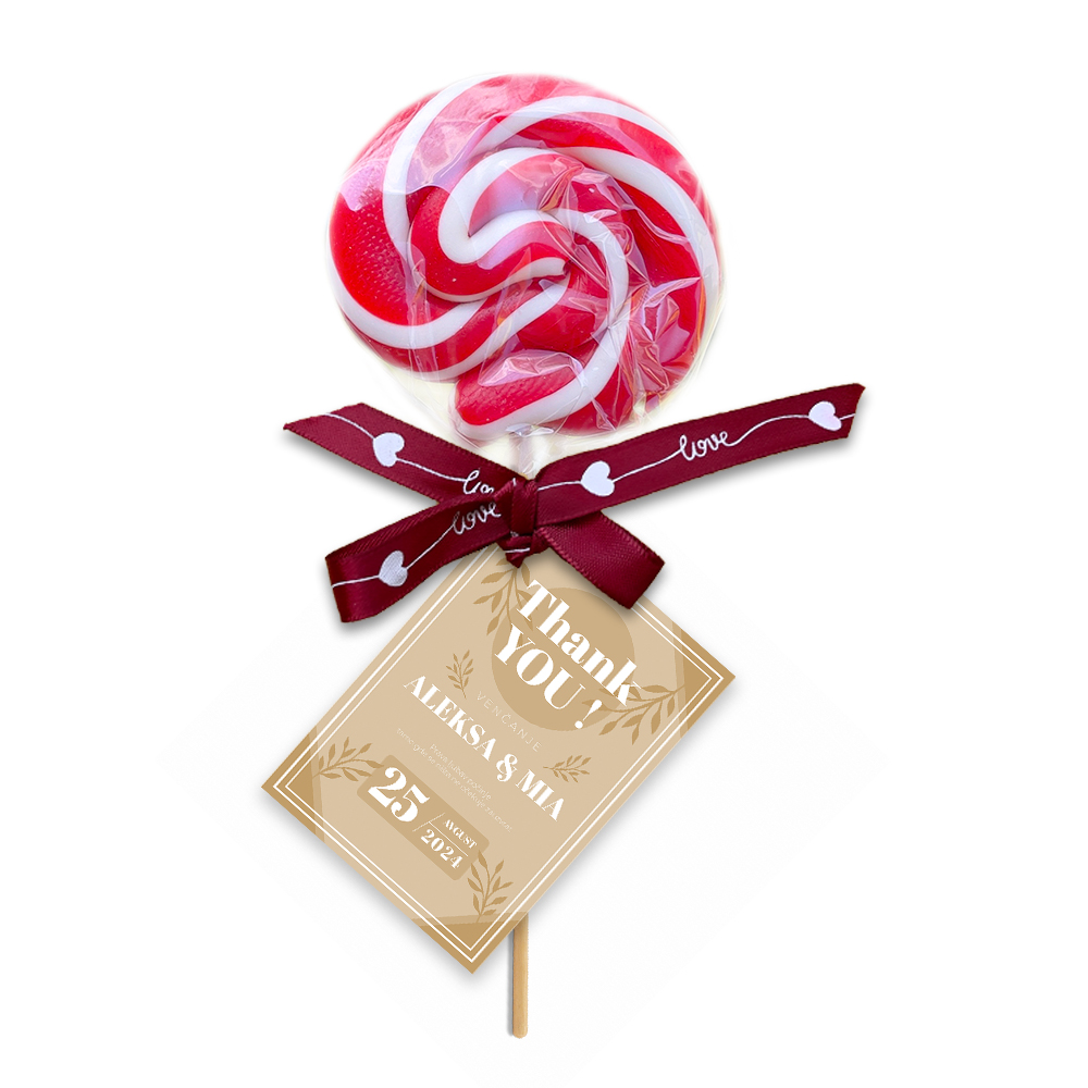Personalizovane swirl lizalice u obliku srca za dekoraciju svadbe – Unesite radost i ljubav u dekoraciju vašeg venčanja sa našim personalizovanim swirl lizalicama. Savršeno za slatki sto i kao mali poklon za vaše goste, ove lizalice su jedinstveni suvenir koji će svima ostati u sećanju. Personalizujte ih sa inicijalima mladenaca ili datumom venčanja za poseban dodir.